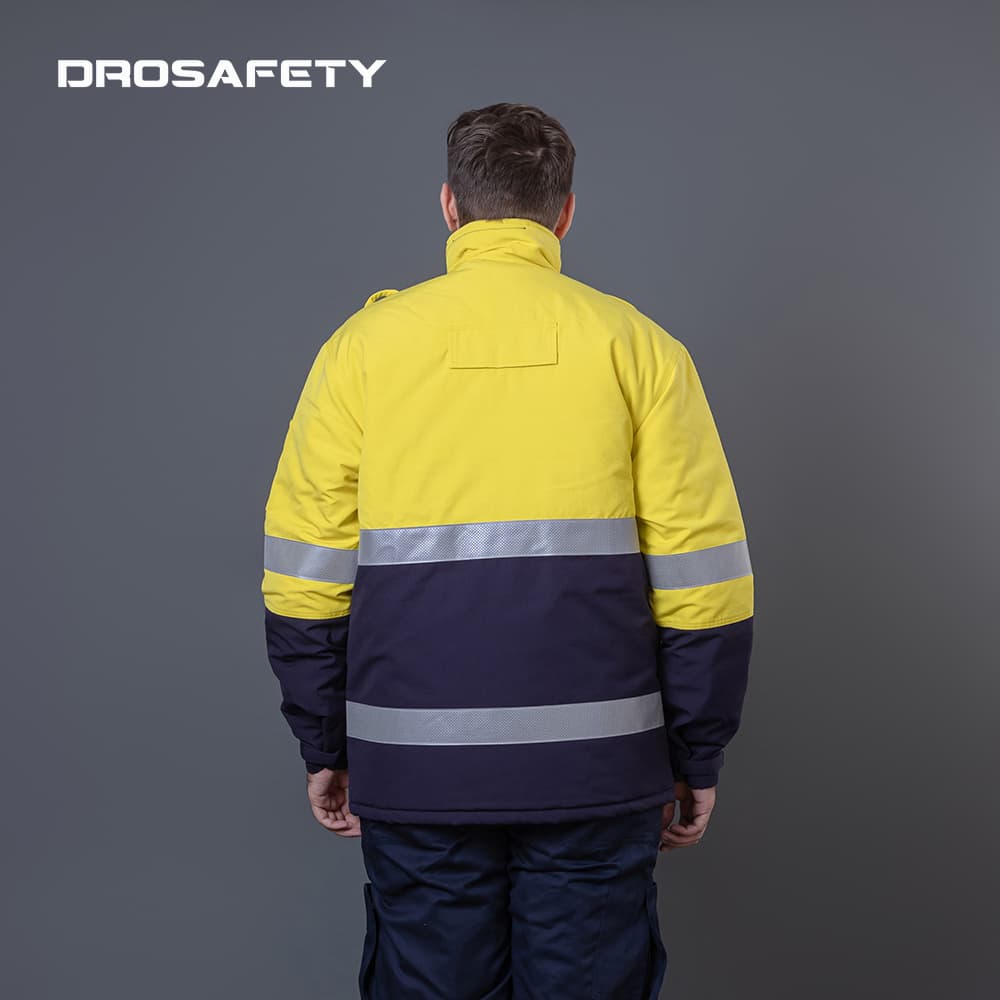 專為石油天然氣行業(yè)設(shè)計(jì)的一種高性能工作服,特別適用于寒冷冬季的工作環(huán)境。這款?yuàn)A克集合了夾棉保暖、阻燃防護(hù)和反光警示等多重功能,為工作人員提供了全方位的安全保障。